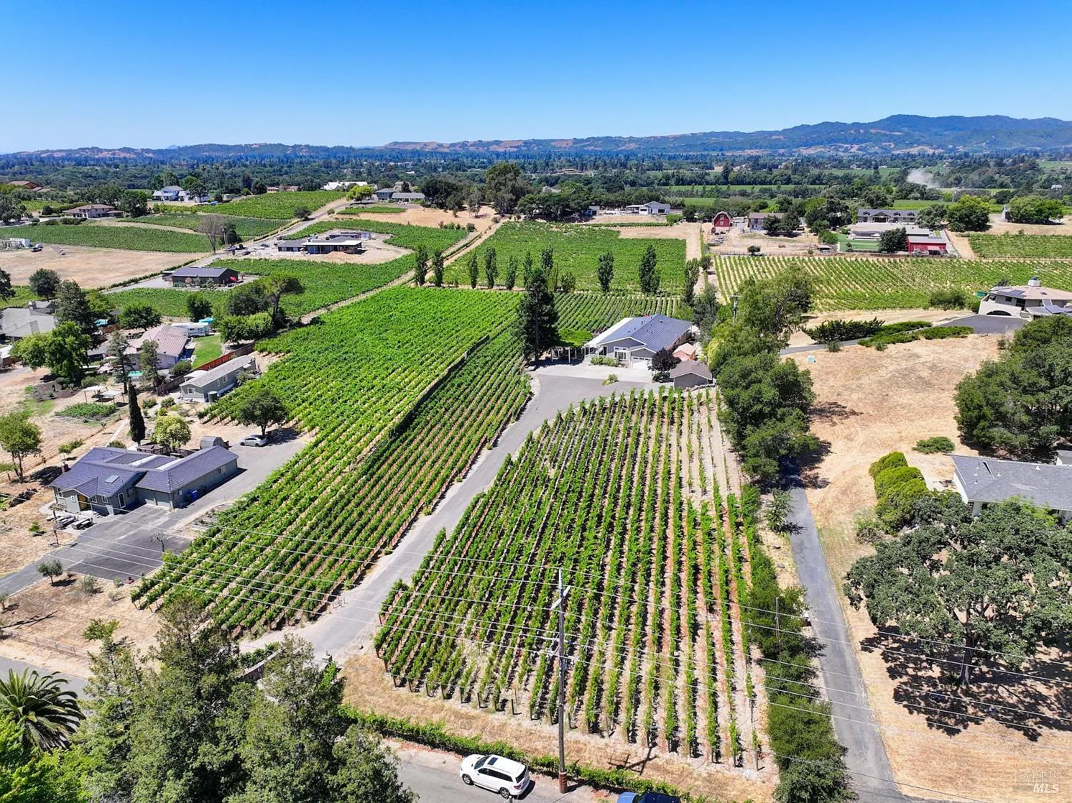 Welcome to 1597 Estee Avenue, a special East Napa property set on over 2.5 acres with sweeping vineyard views and an authentic Wine Country feel that's increasingly hard to find. With approximately 2,600+ square feet of single-level living, this 4 bedroom, 2-bath home offers generous space, a comfortable layout, and the opportunity to make it your own over time. Brazilian cherrywood floors add warmth, while the spacious kitchen with Viking gas range and center island anchors the main living areas. Large gathering spaces make entertaining easy, and the home flows naturally to the outdoors where the setting truly shines. Approximately 1.66 acres of Cabernet Sauvignon vines create the ultimate Napa Valley backdrop. Enjoy slow mornings on the oversized porch overlooking the pool and vineyard rows, or unwind at sunset with the golden light stretching across the property. Additional property highlights include: in-ground pool (installed in 2020), indoor laundry, central heating and air conditioning, double sided gas fireplace, fully owned Tesla solar roof with two Tesla Powerwalls, attached 2-car garage plus detached garage (installed in 2021), ample room for additional vehicles, equipment, or recreational toys. Privately positioned yet conveniently located near Silverado Country Club and with easy access to Silverado Trail, this property offers the kind of land, views, and lifestyle that make East Napa so desirable with the added opportunity to refine and enhance the home over time.