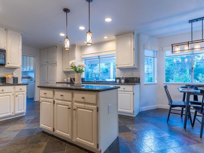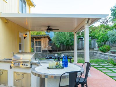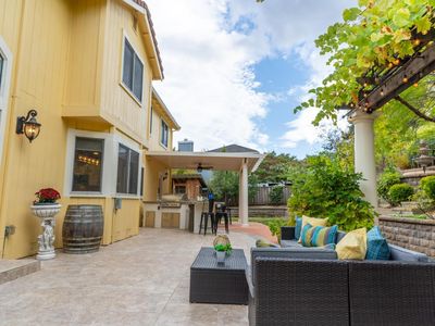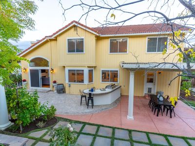 Located in Napa's desirable Browns Valley neighborhood, this spacious 5-bedroom, 3-bathroom home sits on a generous 0.6-acre lot with vineyard and beautiful hillside views. The landscaped front yard and covered porch welcome you into a warm living room featuring hardwood floors, a pitched ceiling, and a cozy fireplace. Just a few steps up, the main level offers a formal dining room, laundry room, and a kitchen that opens to the family room and a covered back patioperfect for indoor-outdoor living. The primary suite is also on the main level and features vaulted ceilings, a walk-in closet, and a luxurious bathroom with a jetted soaking tub, tiled stall shower, and private toilet room. An additional bedroom or office with a full bath completes the main level. Upstairs, you'll find three spacious bedrooms and a full bathroom with dual sinks and shower over tub. The backyard is an entertainer's paradise with a built-in BBQ, covered patio, gardens, fruit trees, chickencoop, and a lovely Gazebo up above, along with approximately 1,000 Cabernet vines ideal for a hobby vineyard with stunning views of the hills. A 3-car garage with extra storage along the back wall completes the property. This exceptional home blends comfort, functionality, and a true Napa Valley lifestyle.