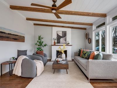 702 Greenbach Street offers one of the larger floorplans in the neighborhood, combining generous space with authentic character. The living room is defined by exposed wood beam accents and large picture windows that bring in abundant natural light. An oversized primary bedroom provides a true retreat, offering scale and flexibility rarely found in the area. The thoughtful layout delivers comfort and presence throughout, all set in a desirable Napa location.