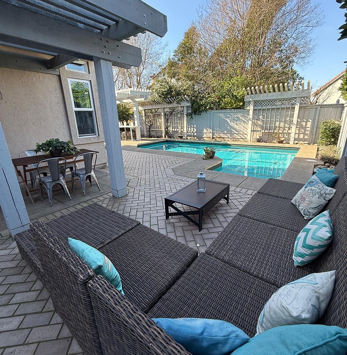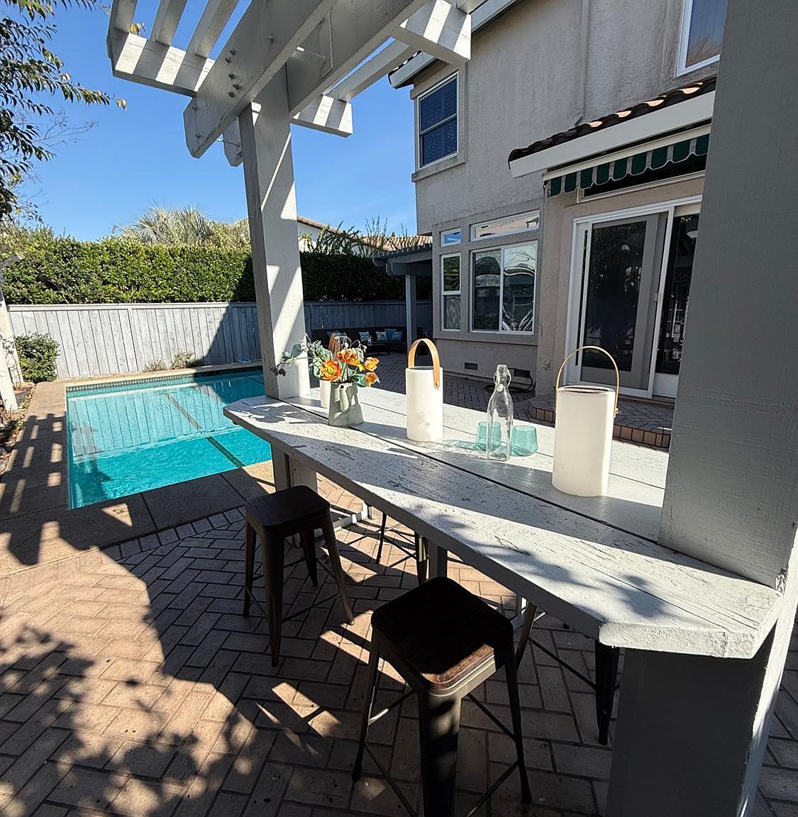 Beautifully positioned on a quiet street, 45 Cove Court offers the rare combination of water views at a non-waterfront price the best of both worlds. You are welcomed by a gated courtyard entry that leads to double front doors, creating a sense of privacy and arrival. This inviting three-bedroom, two-and-a-half-bath home features wood-style flooring throughout the main level, an updated kitchen with stainless steel appliances and granite countertops, and a layout that feels both comfortable and welcoming. The primary bedroom is a spacious retreat, complete with two large closets, while the additional bedrooms offer flexibility for guests, a home office, or family. Step outside to a generously sized pool and patioperfect for relaxed Sunday afternoon barbecues, casual gatherings, or simply enjoying Napa's sunshine. The gated community offers shared amenities including a private park, bocce ball courts, and picnic tables, enhancing the easy, resort-style lifestyle. A deeded boat dock in the marina adds to the appeal, making it easy to enjoy life on the water without paying a premium waterfront price. Ideally located, the home is just minutes to downtown Napa by caror enjoy an easy trip by boat, offering a rare blend of privacy, convenience, and lifestyle.