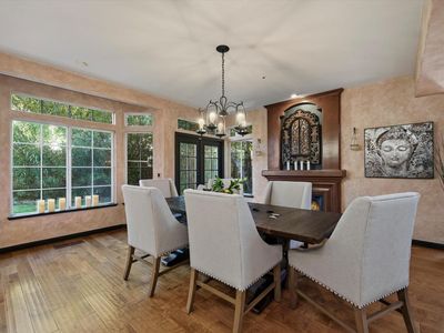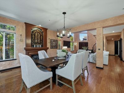 The Napa Yacht Club lifestyle, the comforts of home, with your private deeded dock just seconds away. The warmth and elegance will greet you the moment the double doors open to the soaring ceilings and golden light of the great room. The living room, kitchen, breakfast area, and dining area with fireplace all flow together in an expansive open layout. The impressive granite-island kitchen with six-burner gas cooktop, large built-in KitchenAid refrigerator, double ovens, and oversized stainless sink is an entertainer's dream. Beautiful windows and French doors open to the backyard and patio, glowing with string lights and perfect for warm evenings with friends. A downstairs study with French doors and a full bath adds versatility. Upstairs, the large primary suite features an arched window with plantation shutters, ceiling fan, and a double-sided fireplace shared with the wall-to-wall marble bath. Enjoy the jetted tub with a view, glass shower, double vanity, private toilet and bidet room, and a spacious walk-in closet. Generous guest rooms and a bath with double granite vanity complete the upper level. The amazing three-car garage offers epoxy floors, overhead storage, tool racks, custom cabinets, and new smart doors.