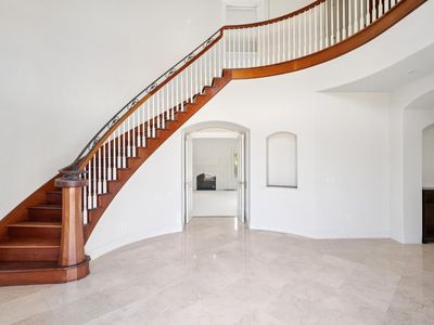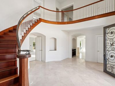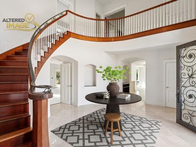 In Napa's desirable Coombsville region, this stately Tudor-inspired estate offers over 7,800 sq. ft. of living space on 29 acres, presenting a rare opportunity to craft a true Wine Country retreat. A dramatic formal entry with soaring ceilings and a sweeping staircase sets the tone for elegant interiors, including a handsome study, expansive entertaining spaces, and a generous kitchen designed for gatherings. A private guest apartment adds flexibility for extended family, visitors, or a caretaker's quarters. While much of the home is complete, it awaits its next owner's vision to finish select flooring, update details, and elevate the residence into a showcase of modern Napa luxury. The mostly level acreage provides ample water and holds exciting potential for future vineyard development, gardens, or equestrian amenities. Mature trees, open landscapes, and serene vistas enhance the setting, offering both privacy and a sense of scale. Just minutes from downtown Napa's dining, shopping, and cultural experiences, and surrounded by world-class wineries, this property is an invitation to create a legacy estate in one of the Valley's most sought-after enclaves, blending timeless architecture with the promise of extraordinary lifestyle potential.