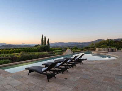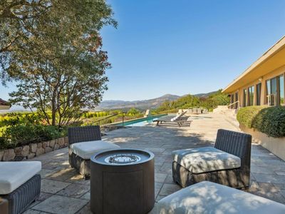 Extraordinary view estate on 5.35 acres located in private gated setting on highly desirable East side of Napa in Coombsville AVA minutes to downtown. Flanked by views of the Mayacamas & Vaca Mountains & surrounded by sea of vineyards featuring single level 4 BDR 4 BA 4213 sq ft main house, 1 BDR 1 BA 800 sq ft +/- guest house with kitchen & 1 BA 200 sq ft +/- pool house with kitchen. Experience Napa Valley lifestyle of indoor/outdoor living with sliding glass doors opening to expansive outdoor entertaining areas including solar pool with built in spa & water feature, pool house loggia with Blaze BBQ, built-in seating & dining area, large lawn, fruit orchard & jaw dropping views. Main house offers perfect floor plan for hosting guests & entertaining. Luxurious main en-suite with fireplace, seating area, 2 spa-like baths & access to pool with spa is located at one end of home & 2 ensuite BDRS with private outdoor seating areas located at opposite end plus office & 4th BDR currently used as exercise studio. Expansive great room with extraordinary views features resort-like wet bar with counter seating, 2 large seating areas each with fireplace, 2 dining areas & gourmet kitchen with Wolf range & hood, 2 SubZeros, 2 Miele dishwashers, counter seating, walk-in pantry & more!