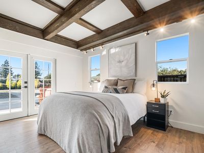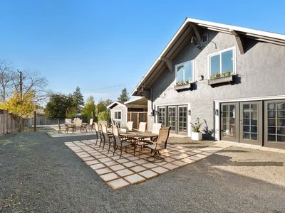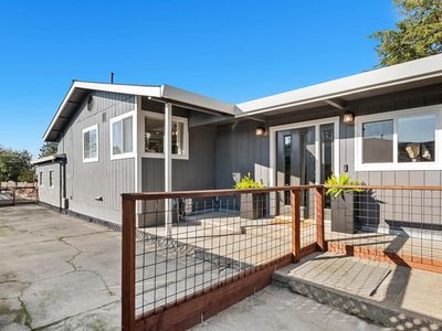 Discover the endless possibilities that await on this expansive, level 1-acre lot in South Napa. Offering a truly peaceful country setting while remaining conveniently close to town amenities, this property presents a unique blend of privacy and accessibility, and is on city services. With the home thoughtfully situated to one side of the property, the expansive and fully usable acre offers outstanding potential for those looking to subdivide or expand into a family compound. With well water dedicated to irrigation, this versatile land provides the ideal foundation for additional dwellings, gardens, or recreational spaces, all while maintaining the peaceful, private setting and beautiful Skyline Park views. The truly spacious home boasts over 3,800 SF, providing exceptional versatility with a generous layout of 5 bedrooms (including 2 en suites) and 3.5 baths. The home offers abundant living spaces, featuring multiple distinct interior areas and various outdoor entertaining areas, making it great for any season and ensuring lots of space inside and out. Ample closet and storage space throughout adds to its practical appeal. The beautifully updated kitchen is a chef's delight and the heart of the home. It features a large island with an apron-front sink, gas range with a main oven, complemented by a second built-in oven and microwave. Loads of cabinet storage, plus additional storage and a second freezer conveniently located in the adjacent laundry room. The primary suite is a private, light-filled retreat, tastefully updated for comfort and luxury. It includes a large walk-in closet and French doors that open directly onto a newly poured concrete patio. The spacious primary bath offers dual sinks, a separate soaking tub, a beautifully tiled shower, and a private water closet. Outside, the fully fenced grounds are your ultimate blank canvas for imagination. This level, open acreage is ideal for a lush garden, secure storage for utility vehicles, accommodating 4-H animals, or installing the in-ground pool of your dreams, there is room for it all! The property also features a substantial detached 1,300+/- SF garage, which provides ample workspace for hobbies or projects along with additional covered storage. Furthermore, a detached studio space is perfectly suited for a private home office, fitness room, or dedicated creative space. This is a truly unique property and an exceptional offering in Napa Valley.
