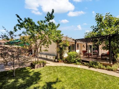Browns Valley Perfection! Single level on a corner lot just a stones throw from the school, parks, and the market. New, owned solar makes this a very smart choice. Soaring vaulted ceilings and walls of windows allow natural light to flood the living room and formal dining area with views of the mountains beyond. Laminate floors and fresh interior paint give it a crisp presentation as you move to the kitchen and family room. The kitchen has stainless steel appliances, and white quartz counters on the peninsula bar seating open to the family room with its brick fireplace insert, and large sliders out to back deck. You will fall in love with the back yard and deck. Gorgeous landscaping & terraces with roses, a lawn area, large patio, raised beds and a charming side gate entrance. One of the 4 bedrooms opens to the back deck, another opens to the side yard. 3 Of the bedrooms have wood plank tile heated floors with individual thermostats, and the bathrooms have been beautifully updated. Glass pocket doors in the Primary & laundry. New roof & gutters. This home is ready for you!