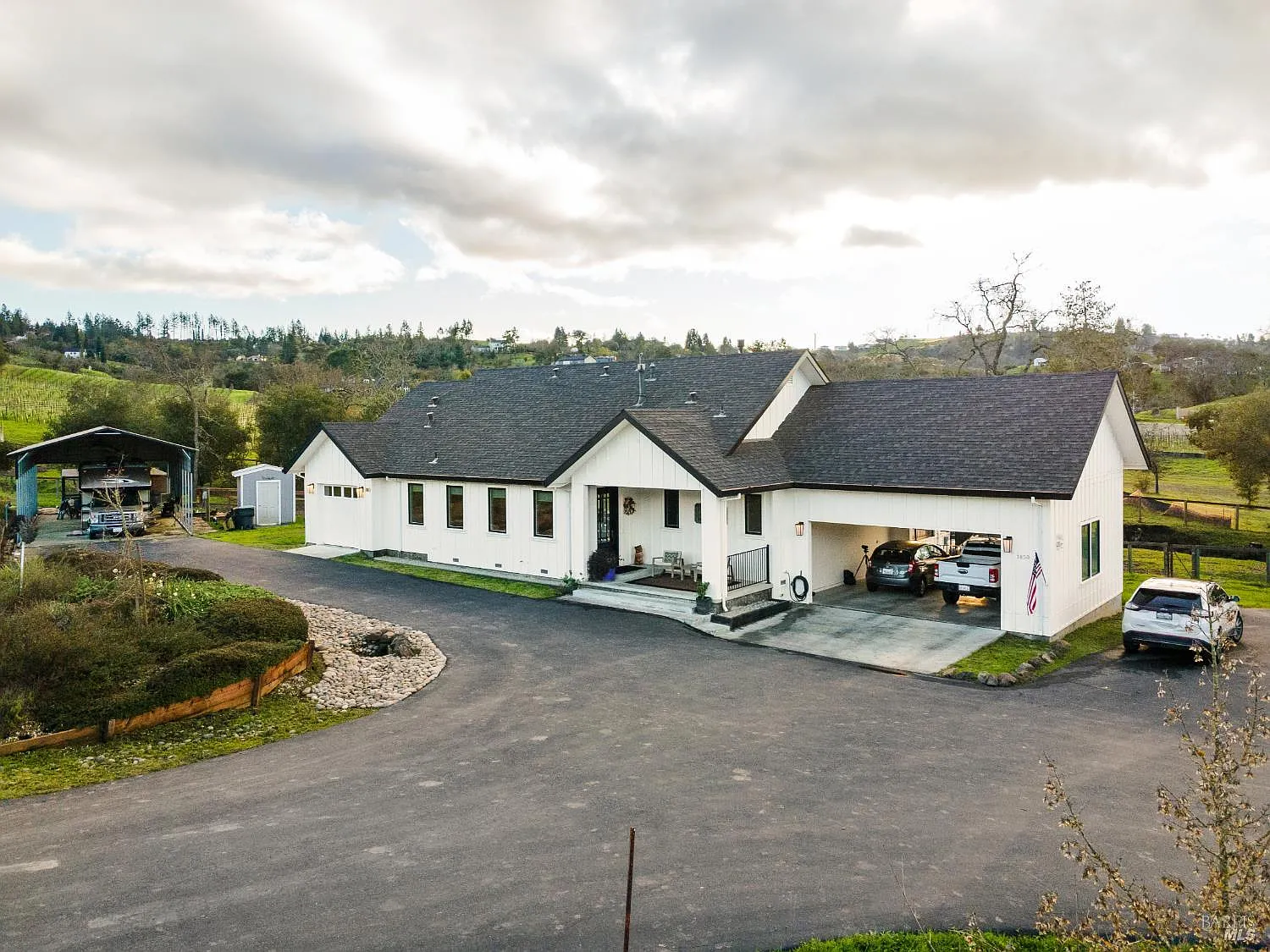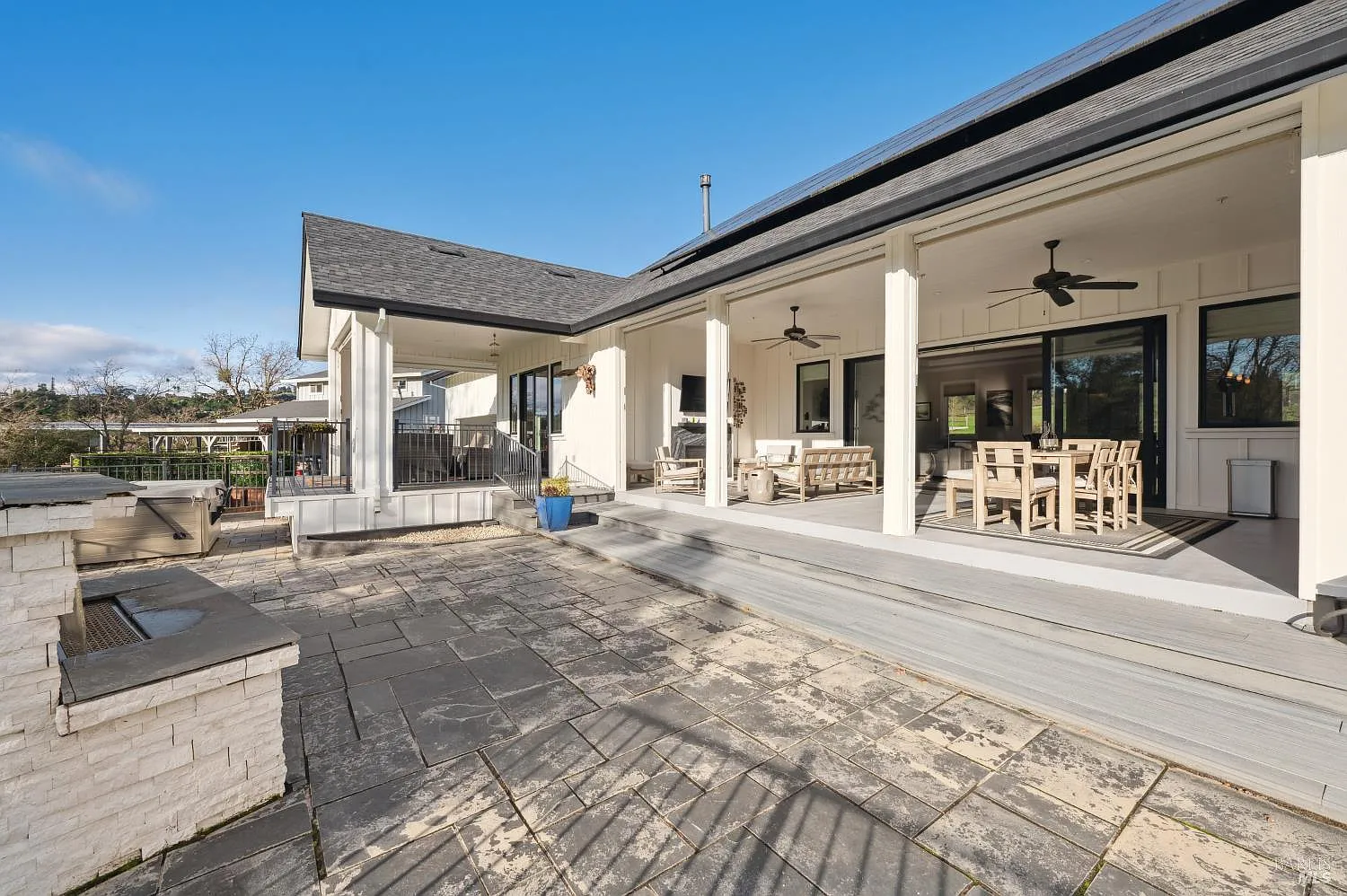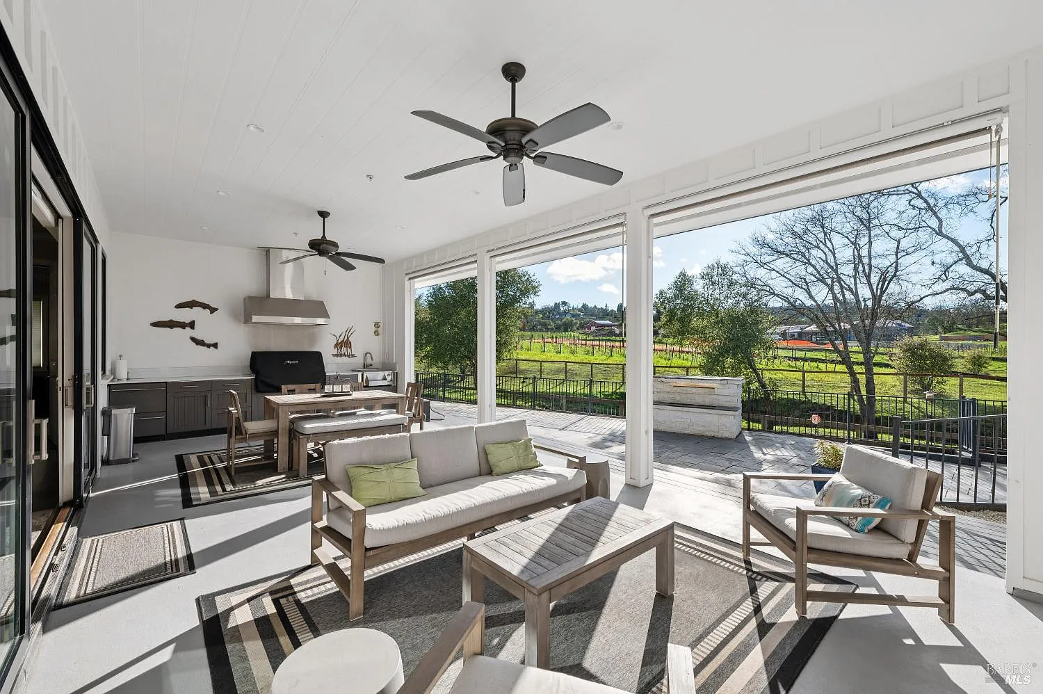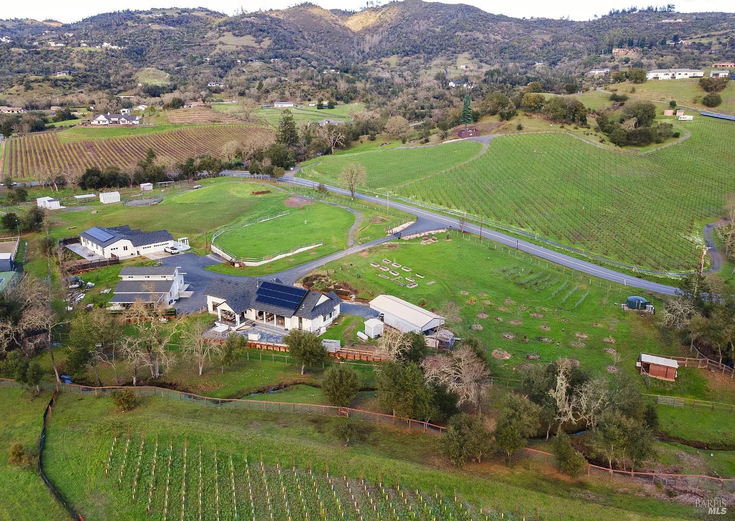 One-of-a-kind country property captures the essence of Sonoma County living you've been waiting for. Surrounded by sweeping Riebli Valley vineyard and pastoral views, this exceptional Santa Rosa estate presents a rare multi-home compound and horse property. Thoughtfully rebuilt, fully permitted & meticulously maintained spanning 6 fully fenced acres, it blends refined country living with versatility, privacy, and flexibility. The 2,460 sf main residence features 4 bedrooms and 3 1/2 baths with comfortable living space designed to take in the picturesque wine country setting. The 1-bedroom, 1 1/2 bath ADU is well-appointed with modern flair - ideal for extended family, guests, or rental use. The spectacular fully-equipped outdoor kitchen with built-in BBQ, fridge, sink, cabinets, plus fireplace, fan and nearby hottub creates an exceptional setting for effortless indoor-outdoor living. Above the huge barn/ workshop, a charming guest house with full bathroom provides additional flexibility and living space. Equestrian amenities include facilities for up to five horses with a tack room and hay barn. The land is equally productive, with two orchard acres featuring 65 fruit trees, table grape vines, & blackberry vines and raised beds. Additional highlights include covered RV storage with full hookups, fully-owned solar, backup generators, individual septic systems and propane tanks for each residence - an infrastructure designed for modern country living. This is a rare offering where vineyard views, open land, and a thoughtfully designed compound come together to create an idyllic retreat.