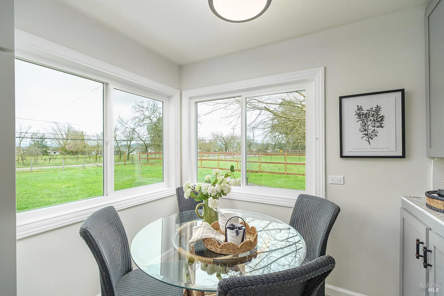 Charming farmhouse on five level acres in desirable Fulton, offering peaceful country living just minutes from Hwy 101 and the Charles M. Schulz Airport. The updated 1-bedroom, 1-bath home includes a versatile bonus room, updated electrical and plumbing, new dual-pane windows, efficient mini-split heating and A/C, and an expansive deck for seamless indoor-outdoor living. The fully usable land is ideally set up for equestrian or hobby farm use with two large horse shelters featuring mud-free paddocks and direct pasture access, hay and tack storage, and no climb perimeter fencing - safe and secure for both dogs and horses. A fenced garden and mature landscaping with majestic oak trees enhance the beauty and functionality of the property. Outbuildings include a detached office/studio, garage, workshop, and a large vintage barn, providing exceptional flexibility for work, storage, or creative space. An automated front gate and a second gated driveway offer privacy and convenient access. Zoning allows for construction of a new single-family residence with a junior ADU while retaining the existing home as an ADUcreating outstanding future development potential in a quiet yet highly accessible location