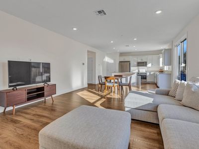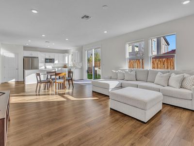 Welcome to 153 Frontier St., located in the desirable Artisan community at Watson Ranch. Built in 2023, this like-new home offers modern living without the wait for new construction. Featuring 4 bedrooms and 3 full bathrooms, including a main-level bedroom and bath ideal for guests, multigenerational living, or a home office. The open-concept layout is designed for both comfort of everyday living and hosting loved ones. The gourmet kitchen showcases white shaker cabinetry, quartz countertops, a large island, and stainless steel Whirlpool appliances. Luxury vinyl plank flooring enhances the main level, with plush carpet upstairs for added comfort. Enjoy the benefits of a paid-off solar system, Smart Home features, and a completed low-maintenance backyard with artificial turf and a stone patioideal for relaxing, entertaining, and enjoying more free time with less upkeep.