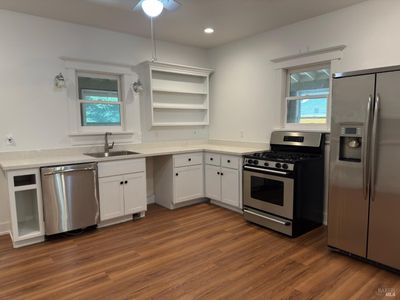 Take another look. Kitchen and porch have been completed. New price for this beautiful 1929 Napa home that was lovingly restored after it was moved from its original location in 2002. It was formerly a rectory home where people affiliated with the First Christian Church could stay when they were travelling. The inside was gutted down to the studs and a structural engineer designated locations for the interior plywood shear walls. New plumbing and electrical and insulation were added. Some of the original wood flooring was able to be saved. A new 25 by 25 garage was also added in 2002. All this is nestled on a 9000 square foot lot under beautiful redwood trees and set back 180 feet from 1st Street. Only 3 homes share this private easement.