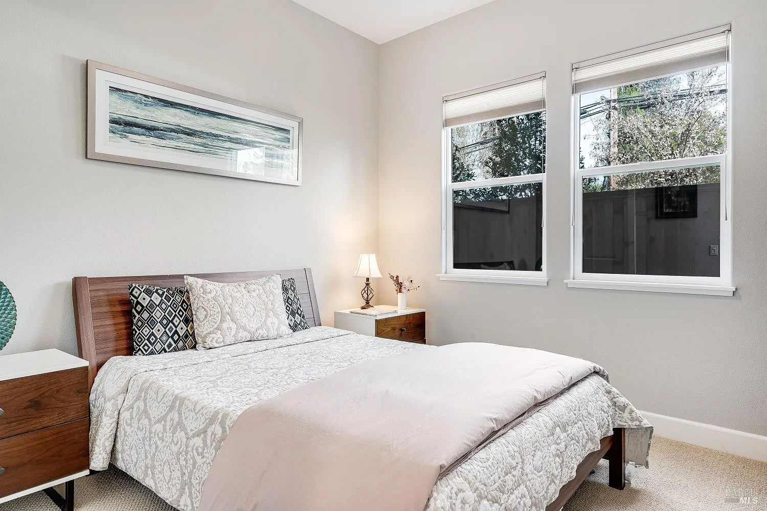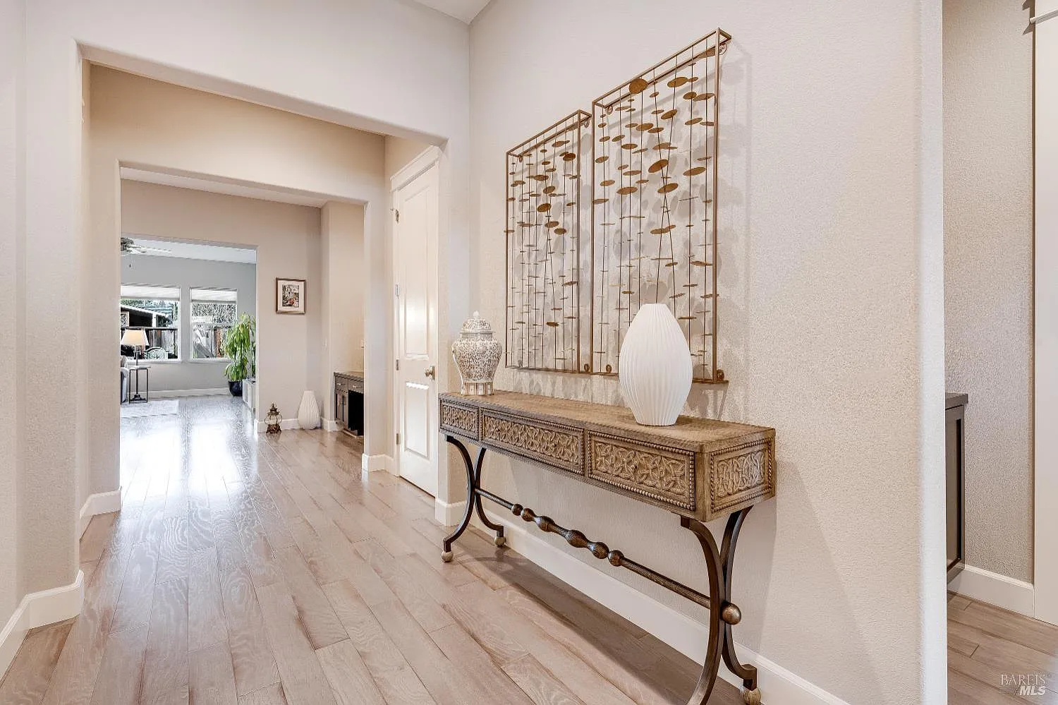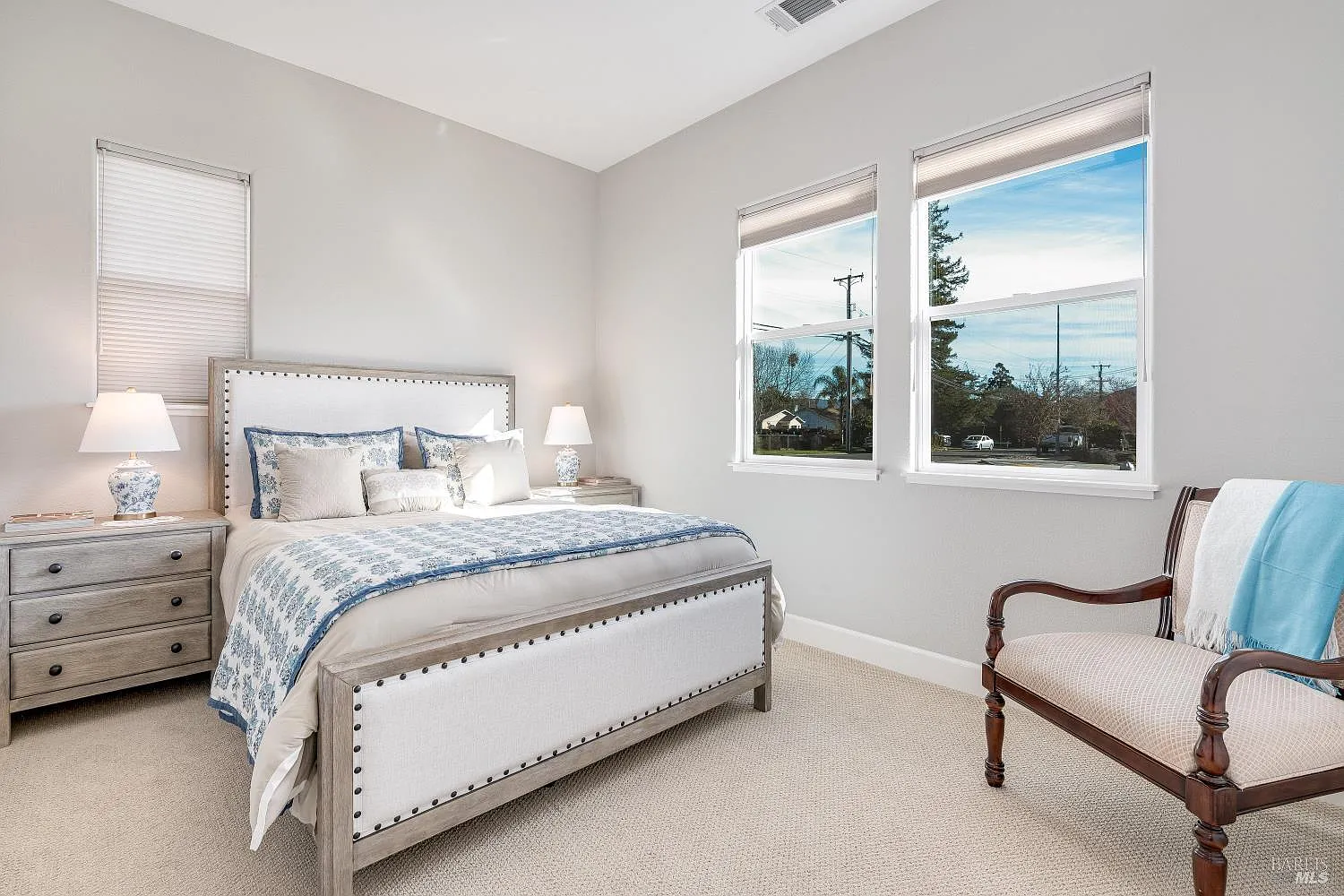 This beautifully maintained single-level 3-bedroom, 2.5-bath home offers modern comfort with an environmentally conscious edge. Built in 2018, it welcomes you with bright, airy spaces and an open-concept kitchen, dining, and great room designed for connection, conversation, and effortless entertaining. The spacious kitchen features a large island, stainless steel appliances, and abundant cabinetry, seamlessly flowing into the main living area. The backyard provides a peaceful outdoor retreat with a lovely Meyer lemon tree and patio space for dining or relaxing. Inside, Hunter Douglas top-down/bottom-up blinds offer flexible light and privacy, with blackout blinds in the primary suite. Owned solar with backup power capability and a whole-home water filtration system add comfort and efficiency. Located within a welcoming enclave of newer homes known for its strong sense of community, this property offers an exceptional opportunity for those seeking the ease of single-level living just minutes from downtown Napa.
