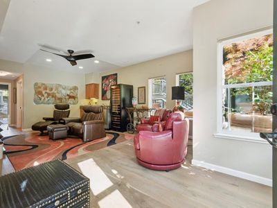 Welcome to the Carneros Village Lofts, a stylish and sophisticated gated community of live/work condominiums just steps from the historic Sonoma Plaza. The double entry of this 2,113 sq ft end unit is smartly updated with new hardwood flooring, stainless steel appliances, additional closet spaces, energy-efficient window treatments, new A/C, and the addition of usable living space on the 3rd floor. On the main level you'll find a spacious living area that includes a full bath and bedroom, expanded closets and the addition of a sports closet. On the 2nd floor you'll find the open-concept design great room with kitchen, dining, and living area. Past the kitchen is a full bath and bedroom with balcony for enjoying morning coffee or bbq set-up. On the top floor is an office-flex area and the primary ensuite with expanded wardrobes, laundry closet, and a private balcony with views of the Sonoma hills. A perfect pied-a- terre or a full-time residence, this unique condo combines function, comfort, and stylish design in one of Sonoma's most coveted locations.