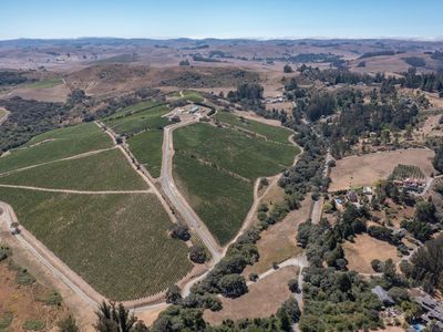 This offering represents the highest quality and best value of any Pinot & Chardonnay vineyard in the Sonoma Coast/Russian River Valley AVAs on the market today! Located 1 hour north of San Francisco on a ridge top in the hills southwest of Sebastopol lies a meticulously developed vineyard designed with a single goal in mind - to grow the most exceptional fruit for the most extraordinary bottlings. Based on the caliber of winemakers and the scores coming from the vineyard, it's clear they have succeeded - the 5 Wells Vineyard is a vineyard unlike any other in West County. This 72-acre site features 32 acres of world-class Pinot Noir and Chardonnay, with the vineyard cascading down a hillside at nearly 300 feet of elevation. Morning fog and cooling evening breezes balance the warm sun, creating a cool-climate environment that preserves acidity and defines the wines' vibrant energy and refined structure. Clonal selections harmonize with the terroir to produce fruit with concentrated flavors, crisp acidity, and a distinct expression of place. Each block's microclimate allows for a carefully timed harvest, ensuring complexity and balance. Complementing the vineyard is an architecturally significant modern industrial estate.