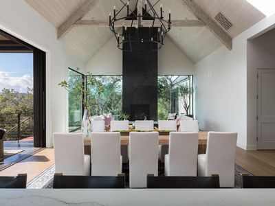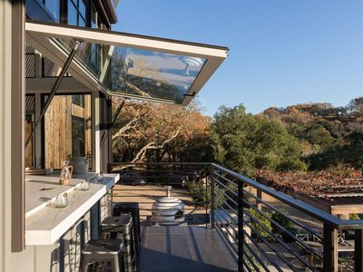 1970 Warm Springs Road is an exquisitely designed home with unique features found throughout. The gorgeous property provides a bucolic setting with mature oak trees, a meadow, and manicured landscaping. The outdoor kitchen boasts a Forno Bravo pizza oven, a Paella station, and a Hestan grill inspired by the one found within the Napa Valley icon, The French Laundry. The interior of the home is equally stunning. The space on the first floor has polished concrete floors, a wet bar, and a fully soundproof recording studio. In the main living area you'll find an infinity window providing a treehouse feel. An expansive deck invites you to experience the breathtaking views of vineyards and Sonoma Mountain beyond. The kitchen has premium appliances, custom cabinetry, and a pop out window allowing for seamless indoor/outdoor entertaining. The primary bedroom is a sanctuary among the trees and each guest bedroom has its own ensuite bathroom. With its picturesque setting and impeccable design, this home is truly remarkable.