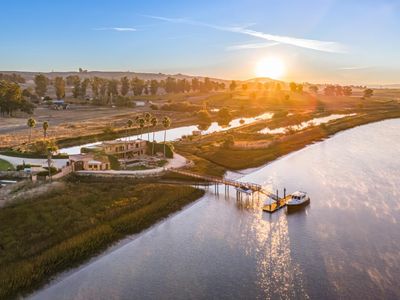 Northern California's centennial ranch estate, a testament to luxury and exclusivity featuring a restored historic waterfront residence with a deep-water boat dock. Gain private access to the San Francisco Bay and embark on a journey that redefines waterfront living. This estate offers unmatched views of the Petaluma River, stretching westerly to Olompali State Park, and southward over Mt. Tamalpais's. Spanning over 130 acres, the property is a crown jewel defined by approximately 7 acres of premium vineyards situated in the renowned Petaluma Gap AVA of Sonoma County. These vineyards are not just land; they are a testament to the estate's richness and a source of award-winning wines. Amidst the vines stands an enclave of guest residences, each a showcase of Italianate Victorian craftsmanship, thoughtfully restored to honor their rich heritage and historical significance. Embrace the freedom of the skies with the property's private runway, perfect for jet-setting to Carmel for lunch or skiing in Lake Tahoe. The estate's private hangar doubles as a luxury lounge and entertainment stage, ideal for hosting memorable gatherings and events. If leisurely pursuits call, you may choose to ride horseback through the estate's vineyards, ponds, and along riverside trails.