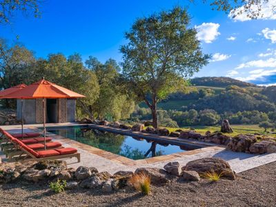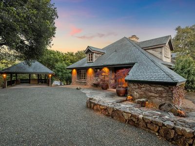 Once in a lifetime opportunity to be the next steward of one of Wine Country's finest estates. Complete privacy on nearly 200 acres of gently rolling hills w/award winning vines yet in a location that is just a bicycle ride to the historic Plaza. Picture perfect views in all directions w/rolling hillsides of terraced vines, towering Redwoods & majestic Oaks, and the SF skyline in the distance. The main residence, known as The Stone House, was handbuilt over a period of 3 decades by artisans from around the world & crafted w/hand chiseled stone sourced from the vineyards it overlooks. 4 en suite bedrooms, 22 foot high greatroom w/a series of French doors opening onto a wisteria graced trellis for dining al fresco. Enjoy sunshine by the oversized swimming pool & spa. Hike your own private wonderland & visit the multiple lakes & reservoirs. Invite the friends for a barn party or keep busy w/projects if you love to tinker. Bring your classic car or bike collection & enjoy a relaxing drive through the vines & out to the Coast. Your own resort is just 45 minutes north of the Golden Gate. Become a wine connoisseur & gift your friends some of your own wine or let a wine maker deal with it & just work on relaxing. Additional charming cottage overlooking lake for even more guests.