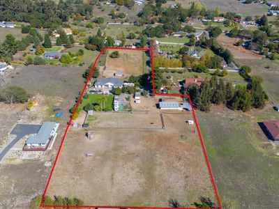 Incredible opportunity to complete your dream home on this beautiful 2.75-acre private property with an additional 3-acre buildable back lot. Although separate APN's the property lives as an approximately 5.75 acre lot. The main home offers an approx. 2,500 sq. ft.3 bedroom, 2.5 bath home and is currently more than halfway complete. Building plans, custom cabinets, appliances, and electrical fixtures are included in the sale, making it easy to pick up where construction left off, saving you time and thousands in finishing costs. The design includes an open living concept, a beautiful fireplace, and large windows that take advantage of sweeping views from nearly every room. Outdoors, enjoy a gorgeous level backyard with an in-ground pool and hot tub, perfect for entertaining, relaxing, or hosting larger events. RV hookups for overflow guests or extended stays. The separate 3-acre buildable lot includes a sleeping well, pole barn, horse arena, and PG&E to the curb. Whether finishing this dream home, creating a family compound or multi use estate, this property offers unmatched opportunity and value.