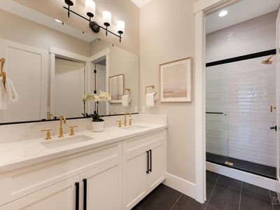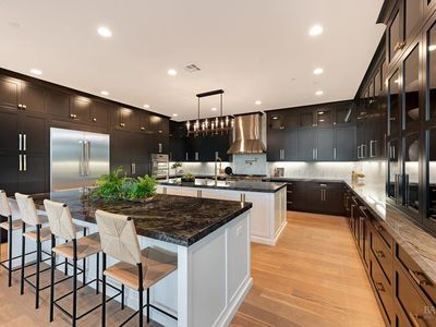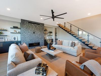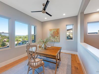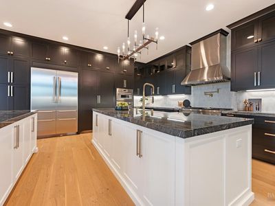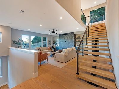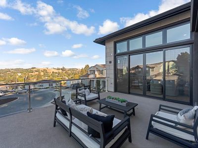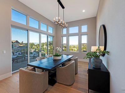 Discover a beautifully designed home in the heart of Petaluma, just 1.5 miles from downtown. This newly constructed tri-level residence blends modern conveniences with thoughtful design, offering stunning Eastern views from every angle. Upon entry, the light-filled atrium and floating staircase set the tone. The lower level features a home gym, locker room, 12-seat theater/game room, and a wine room with a dumbwaiter for easy access to the scullery kitchen. A mudroom off the 5-car garage includes a convenient pet wash station. The main level boasts vaulted ceilings, a spacious office, two bedrooms, and a chef-inspired kitchen with two large islands, Thermador appliances, and two-tone cabinetry. A secondary scullery kitchen caters to entertaining needs, and the dining area leads to an outdoor deck that connects to the surrounding views. Upstairs, find two more bedrooms and a luxurious Owner's Passage Suite, with panoramic windows in the primary shower offering breathtaking views. 22 Oak Knoll is a one-of-a-kind home, blending modern luxury with practicality in Petaluma. www.22oakknoll.com