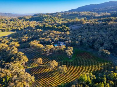 Once part of Jack London's historic estate, this extraordinary 23 acre Sonoma property embodies Wine Country's timeless allure. The residence offers 5 bedrooms and 5 baths, blending classic charm with refined comfort across spacious living areas. Six fireplaces, exposed beams, and French doors create a warm, inviting atmosphere perfect for entertaining or private retreat. Outdoors, the property transforms into a resort-style haven with a sparkling waterfall pool and spa, built-in BBQ, and fire pit surrounded by majestic oaks. A 5 acre Merlot vineyard frames the setting, producing premium fruit in an idyllic landscape. With ample acreage for horses, gardens, or additional plantings, the estate offers both serenity and potential. Located minutes from charming Glen Ellen and world-class wineries, 3295 Warm Springs Road presents a rare opportunity to own a piece of Wine Country history in a storybook setting.