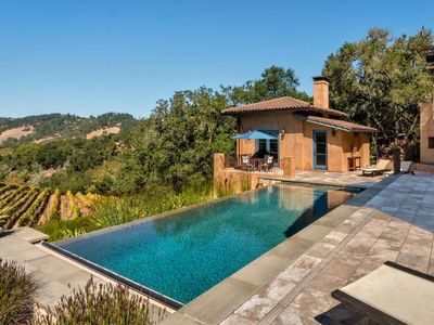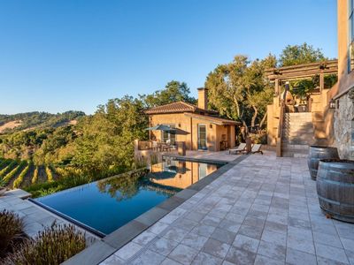 Stunning Italian/Mediterranean Vineyard Estate!! Located equidistant from Glen Ellen and Bennett Valley, this 18.6-acre gated compound overlooks a 1-acre hobby vineyard. Over 6000 square feet of living space consists of the single level main home, guesthouse, wine cellar, fitness room and artists cottage. Also included is a barn for vehicle or boat storage with a second 1-bedroom guesthouse. Outdoor amenities include an outdoor kitchen with a wood burning pizza oven, infinity pool and spa. The property includes 70 producing olive trees, mature landscaping, custom paver walkways and stunning valley and sunset views.