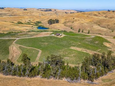 Starwine Ranch offers the pinnacle of wine country living 60.13 acres with approx. 29 acres planted to Pinot Noir and Chardonnay. This Tuscan-modern residence features just over 3,000 SF with a grand entry courtyard, separate one-car garages, and a dramatic great room with panoramic views of San Pablo Bay, Mt. Tamalpais, and the iconic Golden Gate Bridge. An expansive balcony deck creates seamless indoor-outdoor living, ideal for entertaining or sunset viewing. A private lake invites boating, fishing, and year-round enjoyment. Perfect for entertaining or a quiet retreat and adjacent to Tolay Lake Regional Park with hiking and equestrian access. Whether you envision a private wine country retreat, a hobby vineyard, or a heritage estate, Starwine Ranch is a rare opportunity to own a truly remarkable slice of Northern California's most coveted landscape. This rare estate blends vineyard lifestyle, luxury, and unmatched privacyin the heart of Sonoma County.