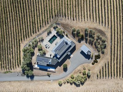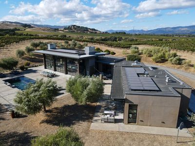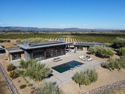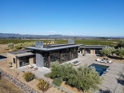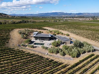 The GlassHouse Sonoma is the ultimate modern escape in wine country an architectural masterpiece on 11.5 acres, with 9.9 acres planted to premium Pinot Noir (Dijon 667, 777, 115) in the heart of the Carneros AVA. Surrounded by approx. 155 acres of vineyards and just minutes from the Sonoma Plaza, this estate blends sleek design with natural beauty. The main residence features 2 bedrooms, 2.5 baths, and an office, with retractable glass walls that open to sweeping vineyard views. A detached guesthouse includes 2 additional bedrooms, a bathroom, and a bar area ideal for hosting. Resort-style amenities include a pool, spa, and over 100 mature olive trees. This is a rare opportunity to own one of Sonoma's most distinctive and luxurious offerings where design, privacy, and location meet in perfect place for your retreat.