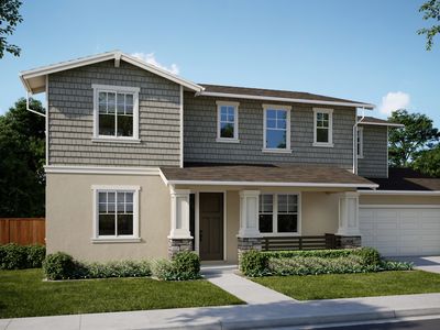 The plan 3x features an open kitchen with large island, great room with option to add a fireplace and 3 bedrooms. It also includes a den on the first floor and a loft on the second floor. Primary bedroom includes dual vanities and a large walk-in closet. Buyers may customize their home finishes by selecting countertops, tile, flooring and more.