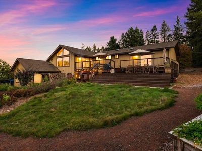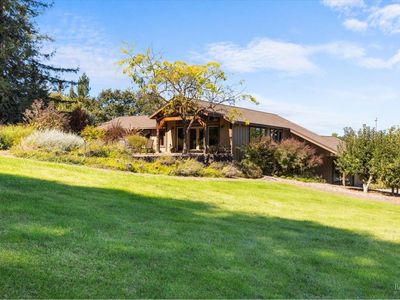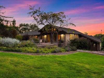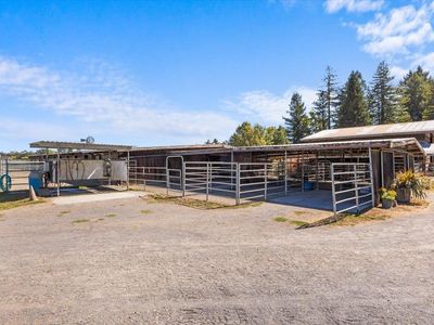 Hidden at the end of a private road in West Santa Rosa wine country lies a beautiful 23.89 acre (2 parcels) equestrian paradise with direct access to Santa Rosa Creek Trail. Permitted income producing equestrian boarding facility includes a 100'x190' lighted arena & 72' round pen, both with all weather shredded rubber/sand footing, redwood barn with 24 12'x18' rubber-matted stalls, 12 with attached 12'x24' runs, tack & grain storage, covered tack up area and vet/farrier paddock. Second barn for hay/shavings/equipment, 9 paddocks with shelters, 5 irrigated pastures, turnouts, hot water wash rack, automatic waterers & chicken area. Access to reclaimed water to irrigate pastures reduces hay costs & allows lush year-round grazing. The private sunny home features tall beamed ceilings, expansive views of mountains, pastures, vineyards, sunrises & sunsets. Updated roof, siding, windows, kitchen, decks and primary suite along with generator hook up, well and septic upgrades. A lower-level studio with kitchenette, separate entry, and patio offers flexibility for family or staff. Enjoy decks, views, wrap around water-wise veggie/flower gardens, and nearby access to Sonoma wine country, farm-to-table lifestyle, coastal beaches, park trails, airport, and country club.