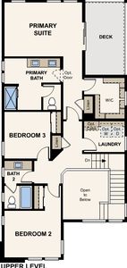 Plan 2 - 2406 This beautiful 2 story welcomes you in the large foyer with cathedral ceilings into the spacious dining and kitchen that is open to the oversized Great Room. Outside of the great room is a pocket office. Downstairs also offers a Den with an optional Bedroom and full bath perfect for guests or home office. Upstairs is the primary suite with a sophisticated five-piece en-suite bathroom and a spacious walk-in closet and linen closet for all your storage needs. Just outside of the primary suite thru the sliding door is a private deck for your evening relaxation. The charming Two additional bedrooms share a bathroom, alongside a second-floor laundry room for convenience, all complemented by a practical two-bay garage.