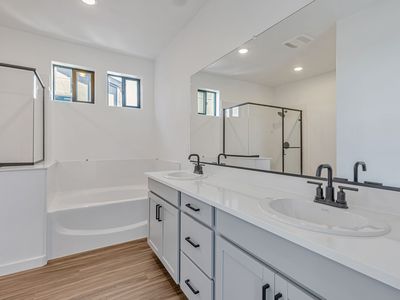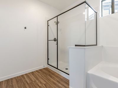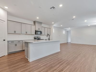 4 Bedroom/3bath/ 2 car garage 2,406 sq ft. Aria II Stone Gray cabinets throughout Quartz Countertops in Kitchen Matte Black Hardware and Plumbing Fixtures Recycle Pkg Upgraded Whirlpool Appliances Upgraded LVP flooring in main living areas Tub and separate shower at Primary Bath Prewire for Security Ready to move in! Complete with Washer, Dryer, Fridge, Blinds Soalr Included Backyard Landscaping Included! This open and spacious home with large great room is ready for your family and entertainment. A must see! North Facing | 3,677 sq. ft. lot | Move-in Ready!