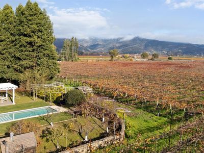 A rare opportunity to own a 6.75 acre Napa Valley estate situated on the valley floor conveniently located between St. Helena and Calistoga in a bucolic setting near Sterling winery. The three-bedroom Cape Cod/farmhouse style residence has 3 bedrooms and 2 1/2 baths surrounded by its own 4+ acre vineyard. Mature trees, overhead trellis vineyard, vegetable garden, fruit trees, in ground pool, and lush lawns provide a magical wine country escape. Spacious living and dining rooms designed for indoor and outdoor entertaining.