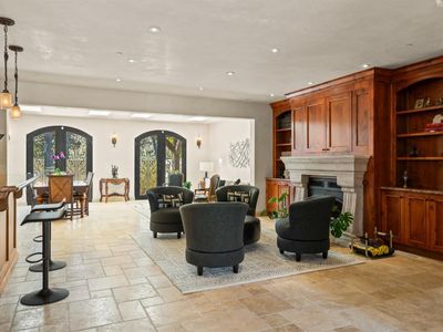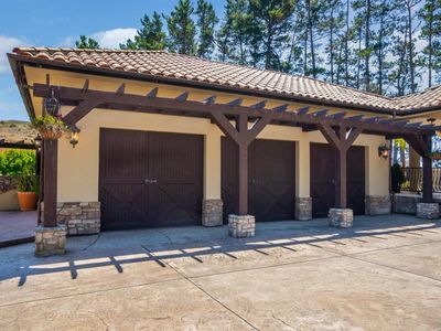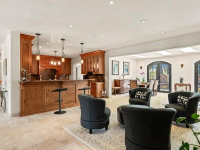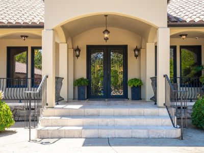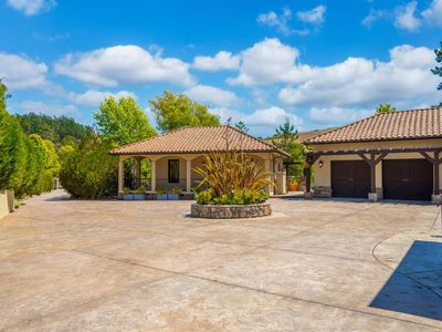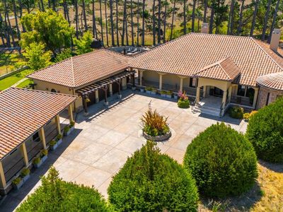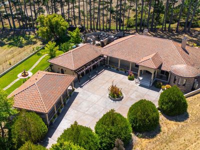 Discover an exquisite, gated Mediterranean-style estate nestled on 9 acres of serene Sonoma County countryside, minutes from Bodega's coastal charm and towns like Petaluma, Bodega Bay and Sebastopol. The property offers a luxurious retreat with sweeping views, privacy, and refined design, a dream for those seeking elegance and tranquility amidst rural beauty. The main residence, built in 2007, spans approximately 3,789 sq ft, featuring 4 bedrooms and 3.5 baths designed with intentional separation for privacy and comfort. The primary suite is strategically tucked away from the communal areas and boasts luxurious touches such as iron-framed doors and windows, and heated travertine flooring. A beautifully appointed 640 sq ft casita, crafted with the same Mediterranean elegance as the main home, offers a welcoming space for guests. The property includes an expansive 5,000 sq ft outdoor entertainment courtyard, complete with a fully equipped kitchen, an inviting outdoor fireplace, an authentic imported Italian pizza oven, and tranquil water features, perfect for al fresco gatherings and leisurely afternoons. Included is a classic two-story barn with 5 stalls, tack room and paddocks. Upstairs in the barn is unfinished space with electricity, offering endless possibilities.