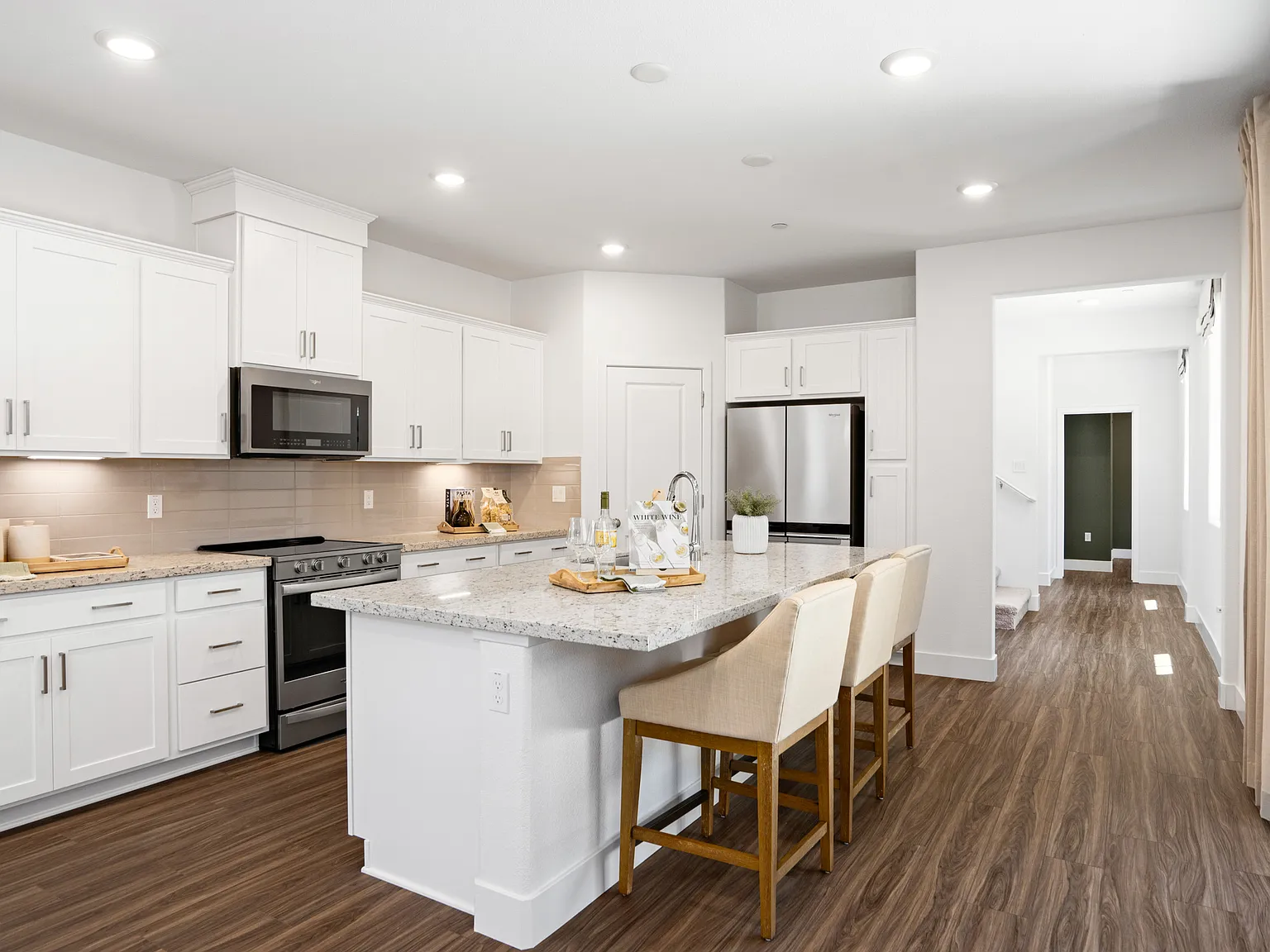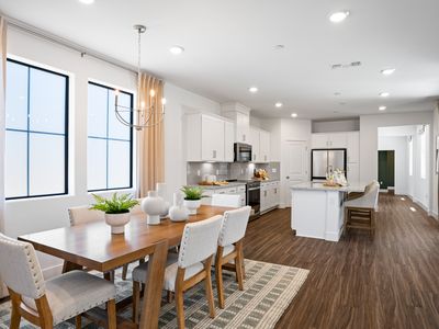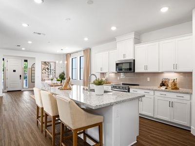 Plan 1 - 2650 at Harmony unfolds across 2,650 square feet of living space, marrying elegance and functionality in a two-story design. The entryway opens to an expansive open-concept great room, incorporating a dining and living area and a kitchen complete with an island and corner pantry. Ideal for multi-generational living, the first floor also offers an optional bedroom at the Den with an adjacent full bathroom and additional storage space. Upstairs, a welcoming loft leads to three bedrooms, including the primary suite with a spacious shower stall and separate soaking tub with a spacious walk-in closet. Two more bedrooms share a bathroom, alongside a second-floor laundry room for convenience, all complemented by a practical two-bay garage.