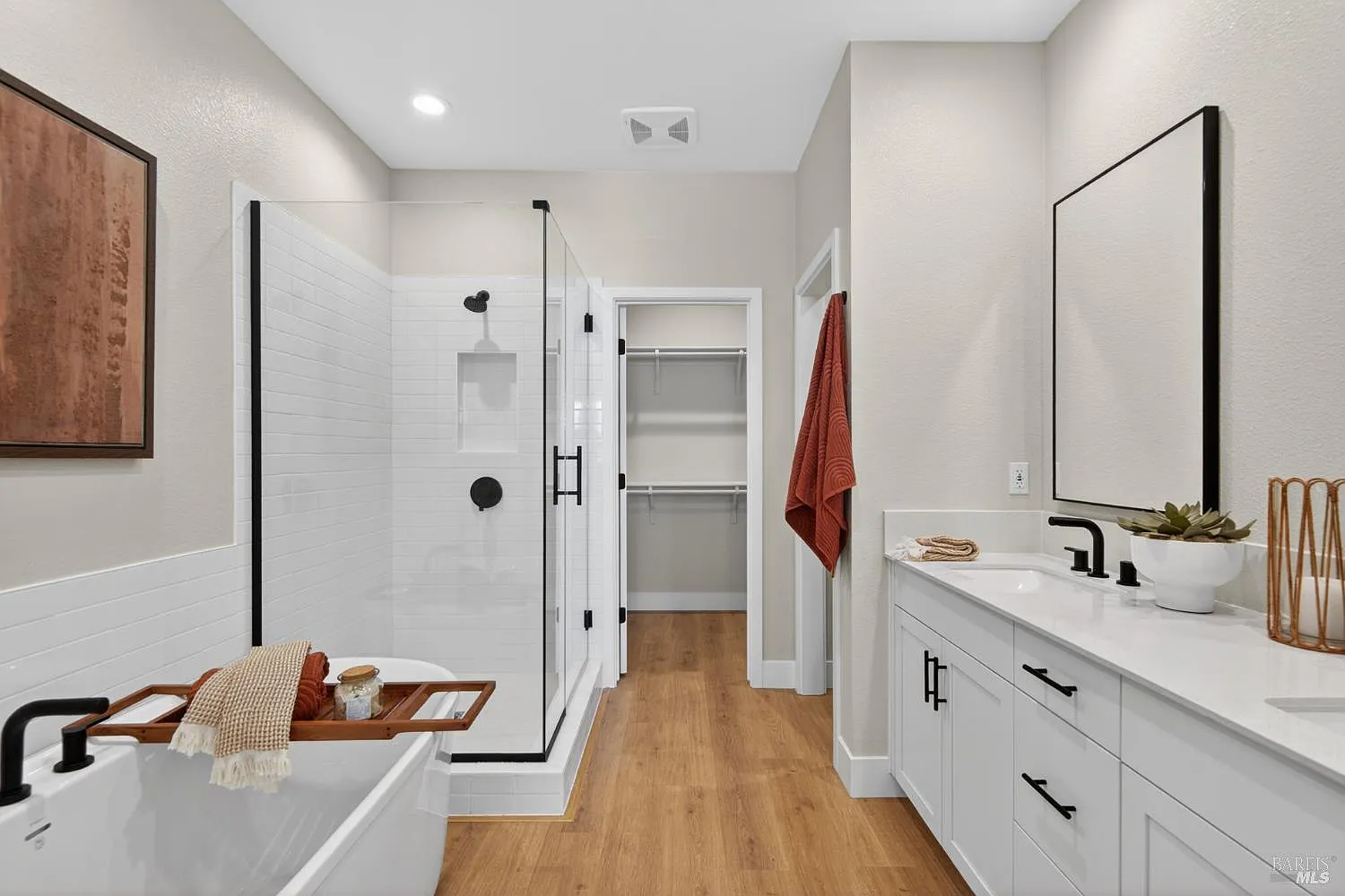 Lot 4 is currently under construction at Brittain Oaks, Santa Rosa's newest community. This thoughtfully designed home offers 3 bedrooms, with an optional 4th, and a direct-access 2-car garage, along with recessed LED lighting, a solar panel system, and more. Photos shown are of the model home for illustrative purposes only and do not depict the actual home available for sale. [Brittain Oaks][Plan 3]