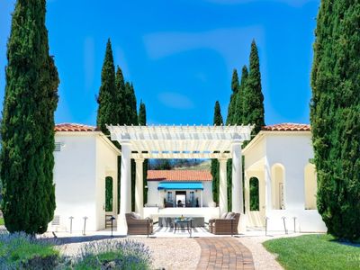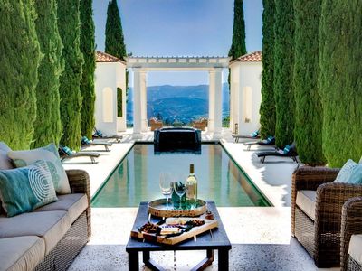 An incredible opportunity to acquire this shockingly beautiful Napa Valley estate. Exquisitely updated modern contemporary residence, unquestionably one of the most striking and elegant estates in St. Helena. It is truly the ultimate retreat for individuals who value privacy. This entertainer's dream will exceed any expectations for Napa Valley luxury living. Experience unsurpassed & breathtaking views from its magnificent mountain perch on nearly 14 acres of solitude and grandeur. A spectacular great room accented with soaring ceilings & massive fireplace, compelling interior spaces for museum-quality art, stunning light fixtures, fabulous primary suite adjacent to office/library, gym/recreation/media room, & luxurious private guest suites. Grand and modern epicurean-style kitchen with commercial-grade appliances to curate exquisite Napa Valley fine dining at home. Banks of French doors allow direct access to a striking pool veranda, expansive lawns, sports court, gorgeous lavender gardens, & a spacious courtyard for outdoor dining & entertaining.