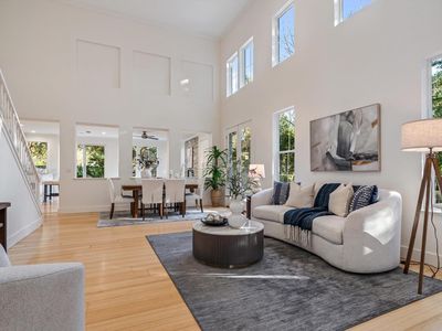 An inviting Napa sanctuary, this luminous retreat offers a rare blend of privacy, natural beauty, and effortless luxury, quietly tucked at the end of a peaceful cul-de-sac on nearly half an acre. Surrounded by mature trees and an extraordinary amount of usable outdoor space, the property feels immersed in nature while remaining comfortably within the city. The expansive residence spans approximately 3,132 square feet with 3 bedrooms, 2.5 bathrooms, plus a versatile additional room ideal for a home office or 4th bedroom. A dramatic formal living room with soaring two-story ceilings creates a joyful sense of arrival, filled with natural light that makes the space feel open, uplifting, and welcoming.The kitchen and family room form the heart of the home, thoughtfully designed by professional chefs to support both relaxed daily living and memorable gatherings. A generous central island, perfect for hands on projects like ravioli production, invites connection and creativity, with ample room for shared cooking and conversation. The great room opens directly to the backyard with views of the pool, creating seamless indoor outdoor flow and an easy rhythm between home and garden. Upstairs, a secondary family room provides flexible living space, while the expansive primary suite offers a serene private retreat. Bathed in natural light, the suite features a spacious sitting area, oversized walk-in closet, and a luxurious en-suite bath, an ideal place to unwind and recharge. Outdoors, the property unfolds like a private garden oasis with multiple environments to enjoy. Lounge by the pool, gather on the patio, play on grassy lawns, or wander down to the tranquil creekside setting along Napa River Creek. Mature redwood trees frame a meadow like setting, a chicken coup, and natural spaces perfect for relaxing, reading, or simply enjoying the sights and sounds of nature. With space for recreation, RV or additional parking, and a three-car garage, this exceptional Napa property offers a rare opportunity to live surrounded by beauty, light, and nature. without sacrificing comfort or convenience.