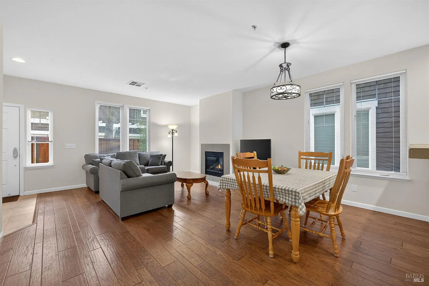 This townhouse-style PUD offers a smart and comfortable layout with three bedrooms plus a versatile landing perfect for a home office, craft space, or reading nook. The dining room is filled with natural light thanks to extra windows, while rich hickory floors run throughout the home, adding warmth and continuity. The kitchen features a generous pantry and ample storage, ideal for everyday living and entertaining. Relax by the electric fireplace in the living area, and retreat to the light-filled primary bedroom with a walk-in closet, skylight in the bathroom, and a standard shower-over-tub bath. Designed for low-maintenance living, this home also includes a two-car attached garage for convenience and extra storage.