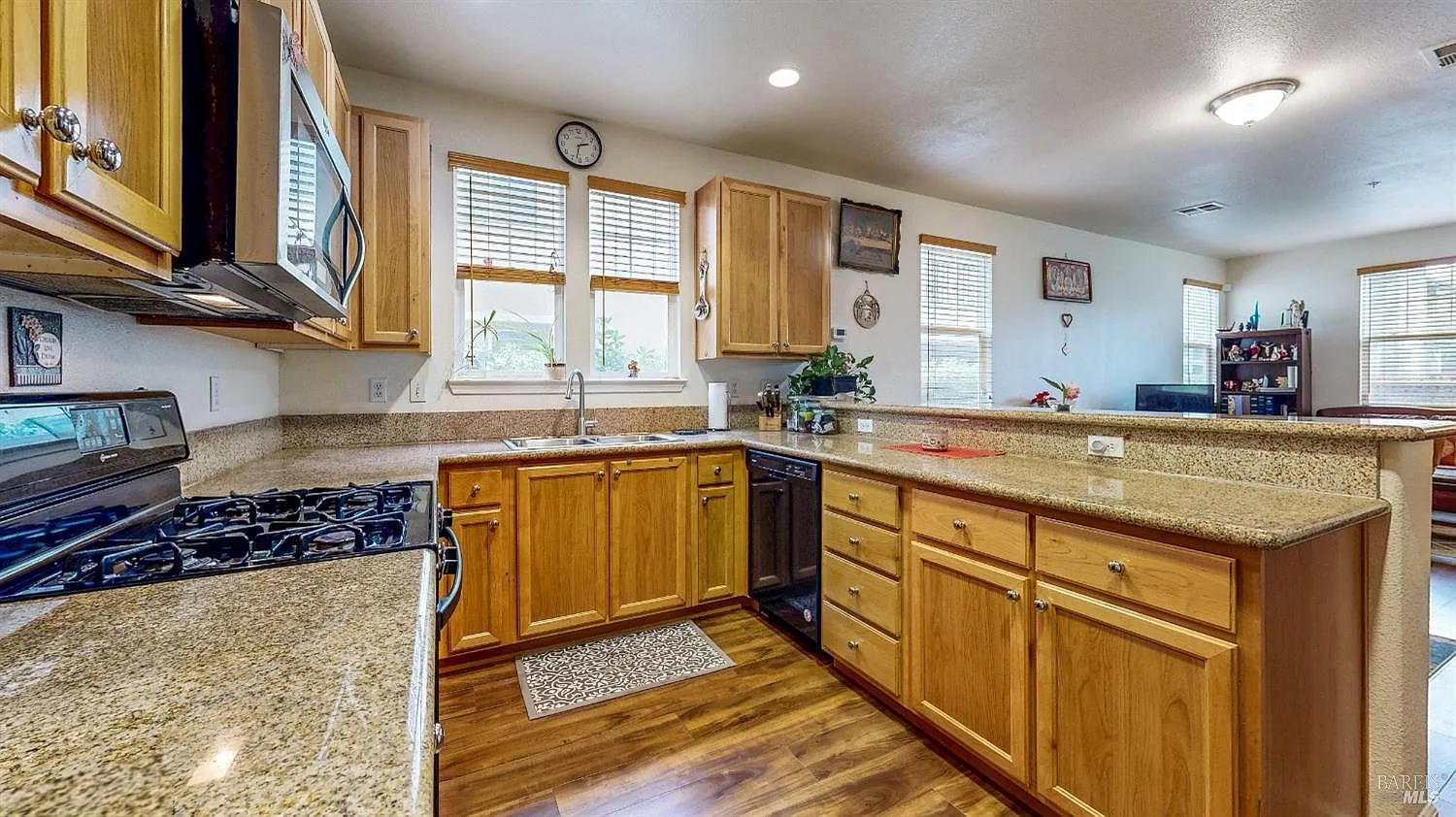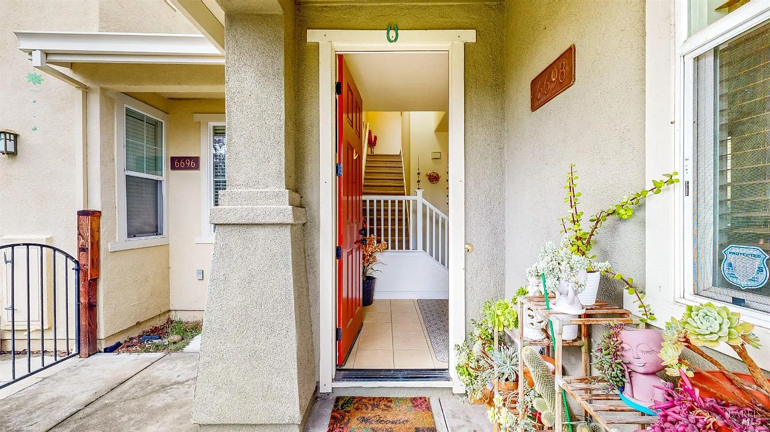 Convenience meets comfort in this stylish 3 bedroom, 2.5 bath home just minutes from the SMART train and local shopping. Step inside to soaring ceilings and an airy, open feel complimented by modern vinyl plank flooring and berber carpet thru-out. The kitchen shines with granite counters, oak cabinetry and recessed lighting creating a warm and functional space for cooking and entertaining. Dual pane windows with a new A/C and furnace system ensures year-round comfort and energy efficiency. Additional highlights include the primary bathroom with soaking tub and nice sized walk-in closet with custom built-in shelving, plus the 2 car attached garage for convenience and storage. Laundry room with extra space and pantry closet are added bonuses, along with an end unit location. Enjoy a community greenbelt and playground just steps from your door with open space behind you. This home offers low-maintenance living in a commuter-friendly location that is move-in ready!