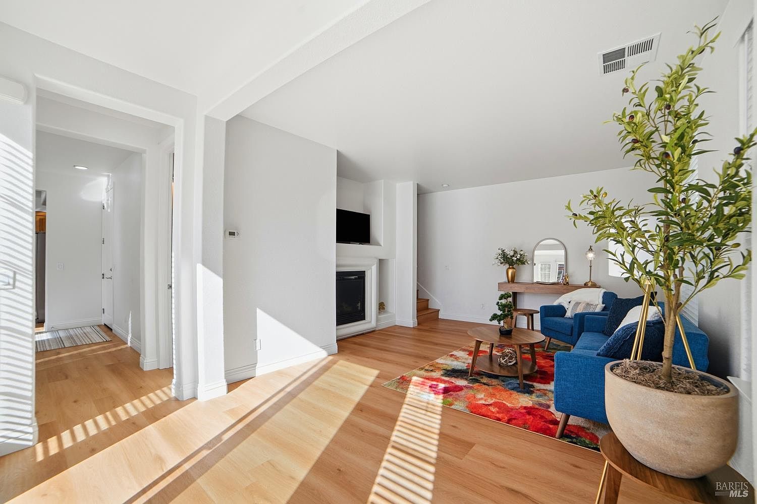 Fabulous City Living Single Family Home. 4 Bedrooms on second floor with views. Tax records show 3 bedrooms. Fresh interior paint, new flooring throughout. High ceilings with an abundance of natural light. The home has a private driveway, shared with only one neighboring home, offers both convenience and ease of access with a private 2 car garage. This home is directly across from the Santa Rosa Creek Trail leading to Flat Rock Park & Howarth Park. The Santa Rosa Creek Trail is a paved path that runs along the Santa Rosa Creek. The trail offers views of the waterway, farms, vineyards, and mountain views. This home is close to Oliver's Market and Montgomery Village, minutes from Rincon Valley Schools. Living room w/glass door that opens to a charming patio for summer lounging and scenic views. The Master bedroom has great natural light, with a large walk-in closet and a soaking tub with views. Home attached on one side by a concrete barrier on ground floor.