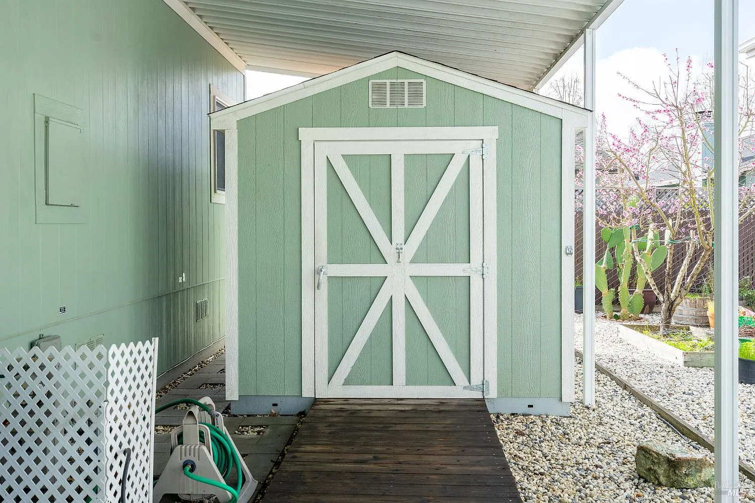 Great floor plan with vaulted ceilings and lots of light. Kitchen features granite counter tops, work island and plenty of storage. Formal dining and living areas. Three bedrooms are perfectly distributed throughout the home. Primary suite with oversize closet with solar tube type light. En-suite bath with skylight, also has a stall shower plus a soaking tub and a linen cabinet that is handy to have. Guest bath features solar tube style light for brightness. Laundry room with appliances, shelving and misc. cleaning supplies for you. Detached shed is a handy workshop or putter around spot. Located in The Country MHP a fabulous 55 plus community.