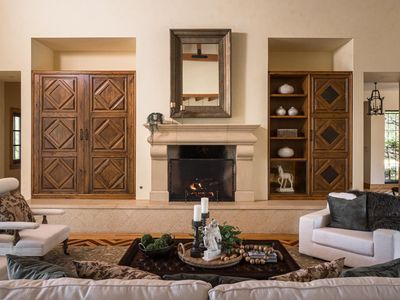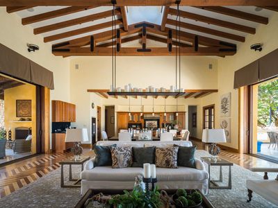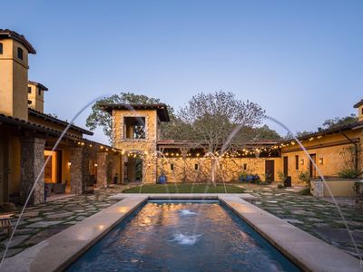 New Price for end-of-year deal. Nestled among rolling hills and majestic oak trees. As you enter the home, you're greeted with high ceilings featuring wood and iron detail. The living area has a gas fireplace and custom built-ins. The kitchen features stainless steel appliances, a large island with seating, and a butler's pantry. The primary suite has many unique amenities, including an officec and FP. There are five additional bedrooms, each with their own ensuite bathroom and large closets. The lower level of the home boasts a large game room as well as a wet bar, media room, home gym, and full bath.From the expansive patio and covered terrace, to the private guest cottage, plunge pool,and 9-person jacuzzi,this home was made for gathering