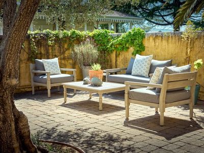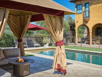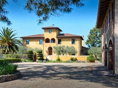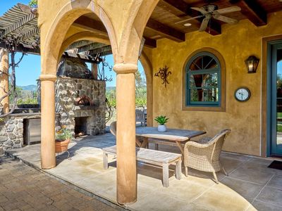 Just minutes from the historic Sonoma Plaza, this exceptional Sonoma Valley vineyard estate. The 5.5-acre parcel showcases a Mediterranean-inspired compound with a beautifully appointed main residence, two guesthouses, an original 2-car garage, and a newer 3-car garage with a large bonus room/flex space. Enjoy resort-style living with a pool and cabana, outdoor kitchen featuring a wood-burning pizza oven, and a cozy outdoor fireplace all surrounded by lush, manicured gardens. The gated grounds include a 2-acre vineyard, two wells, and expansive outdoor entertaining areas designed for relaxed Wine Country living. Enjoy multiple garden and fruit tree areas, an art studio, conditioned wine storage and a detached bonus building that could be used for an office, gym or conditioned storage. Whether you're seeking a luxurious personal retreat, a multi-home family compound, or investment potential, this property offers a one-of-a-kind opportunity in one of Sonoma's most desirable locations.